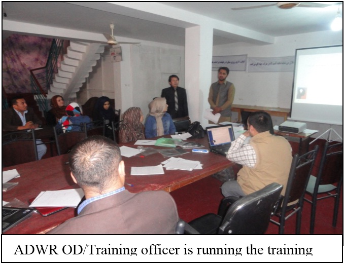Based on priority needs of targeted CSOs, this training conducted for them. The main purpose of this training was developing Internal Communication Policy for targeted CSOs under covered areas of ADWRO in Balkh and Samangan Provinces. At the first day of training, trainees were trained on concept of effective business communication and organizational communication for enhancing of their knowledge on effective/ formal communication in order to use Internal Communication Policy after developing within their organization. During second and third days of training participants worked practically on developing their own policies considering their organizational mission and requirements. Finally, they developed their policies during three days. Developed policies will share with CPI.